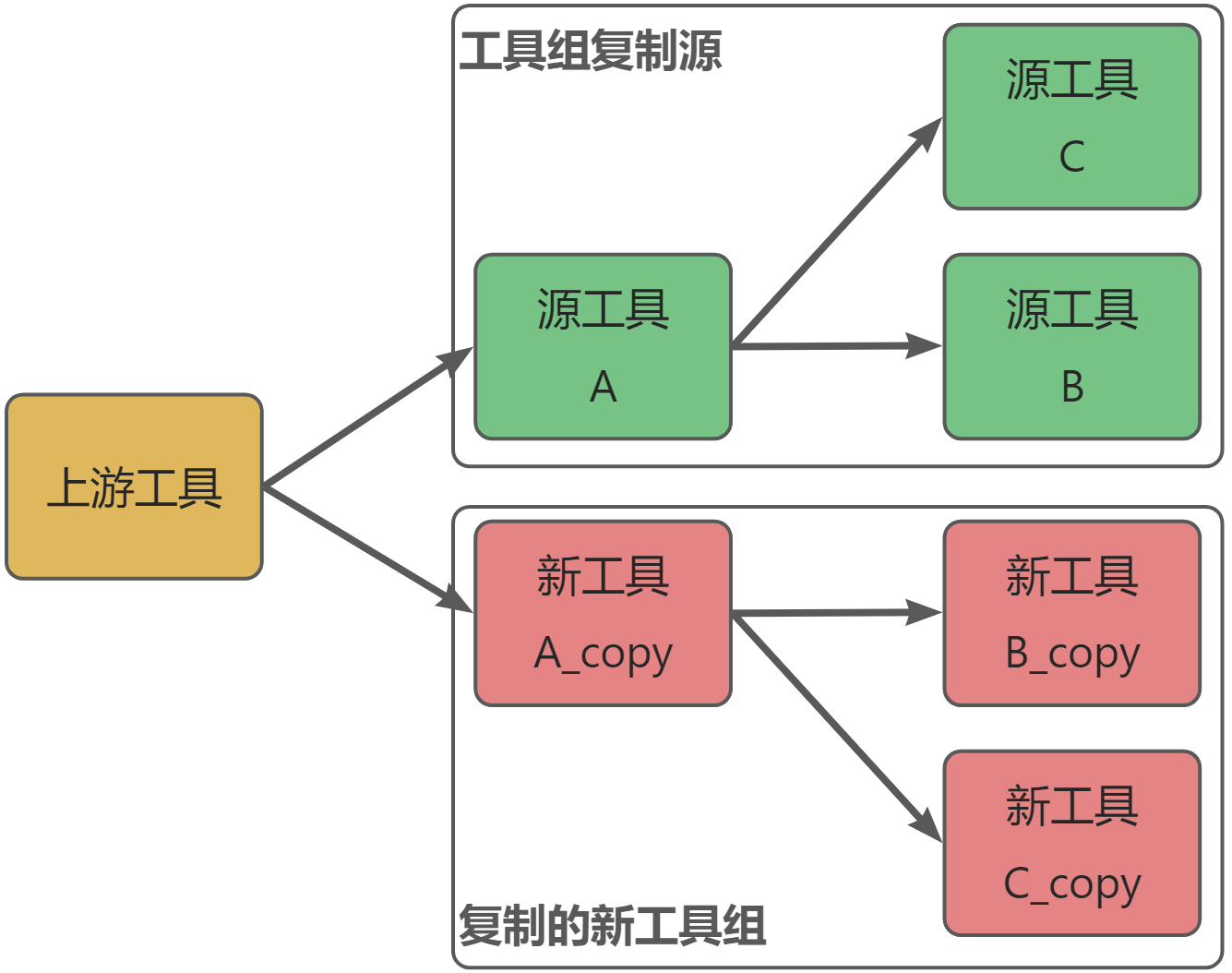 该函数接收2个参数,分别为源工具标识符和目标工具标识符。
